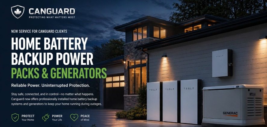 At Canguard Security Solutions, we provide professional installation of home battery backup systems and standby generators to keep your home powered, secure, and fully operational—no matter what happens.